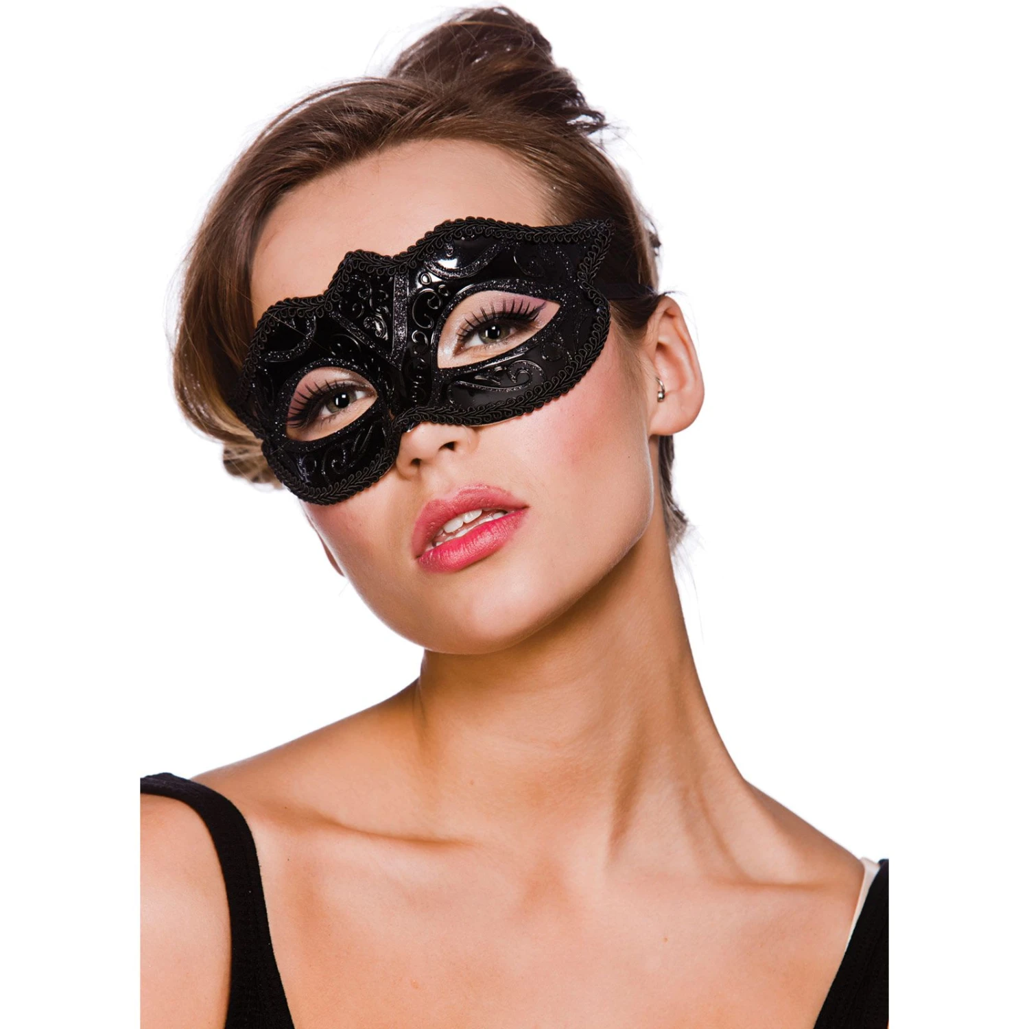 Black Glitter Verona Eyemask MK-9810 | Here at Any Costume we don’t just offer all sorts of fancy dress and accessories. We also offer a full range of masquerade masks.This black glittery eyemask is perfect for any masquerade ball! It’s got glittery detail a lace outline and is tied on with black ribbon.