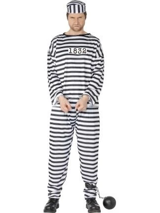Convict CostumeAmazing qualityBlack and WhiteComes withShirt trousers and hat