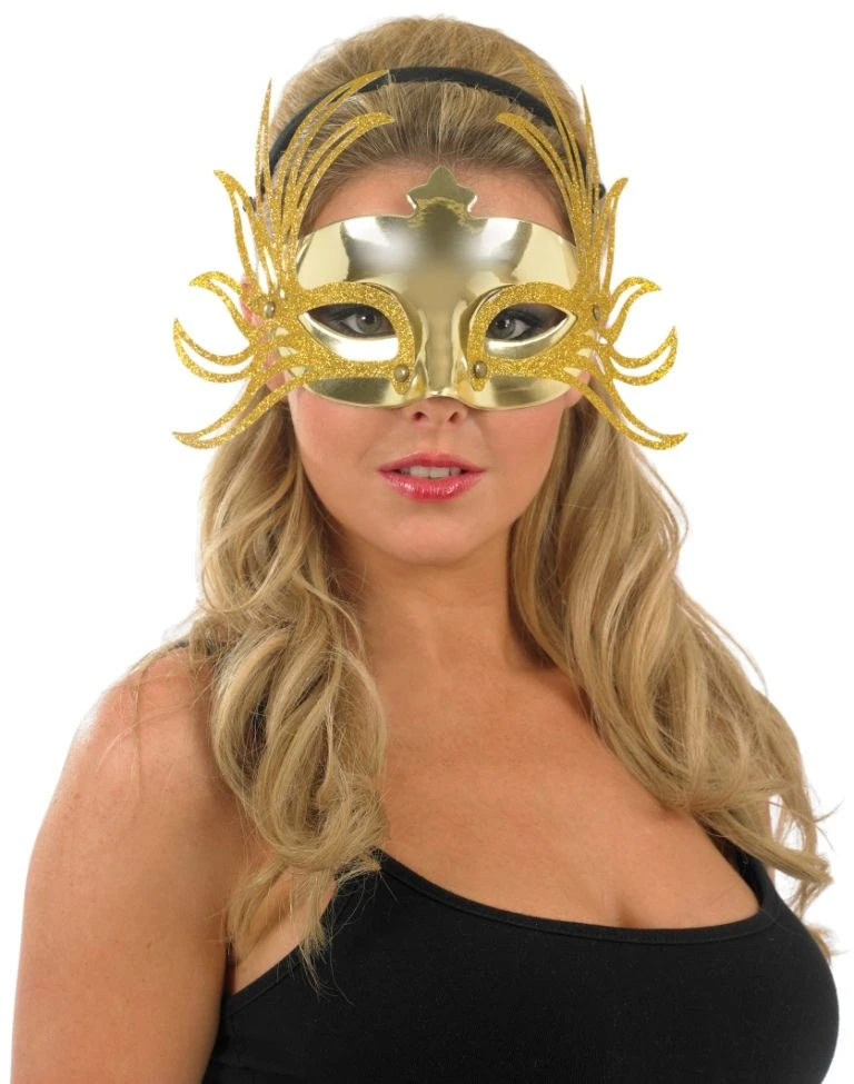 Venetiean styleGold and Silver Eye Mask creates the sun look on your face so shine bright this masquerade ball. Mask is held in place by a headband