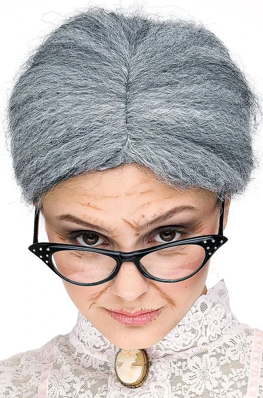 Granny Bun Wig Wicked Old Lady Fancy Dress