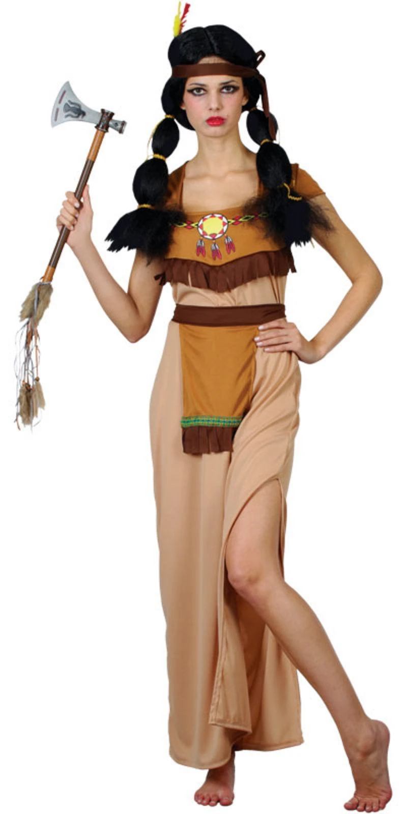 The lore and legend of the Indian Squaw – known for their mystical spirit and natural beauty – comes to life in this artful costume. Discover your own exotic beauty in this attractive Indian Squaw costume finished with native American inspired trims and stylish western fringe.Your complete costume includes: dress belt and headpiece This is a fabulous fancy dress costume by Wicked Costumes. Comes complete with it’s own re-useable zip up suit carrier bag.