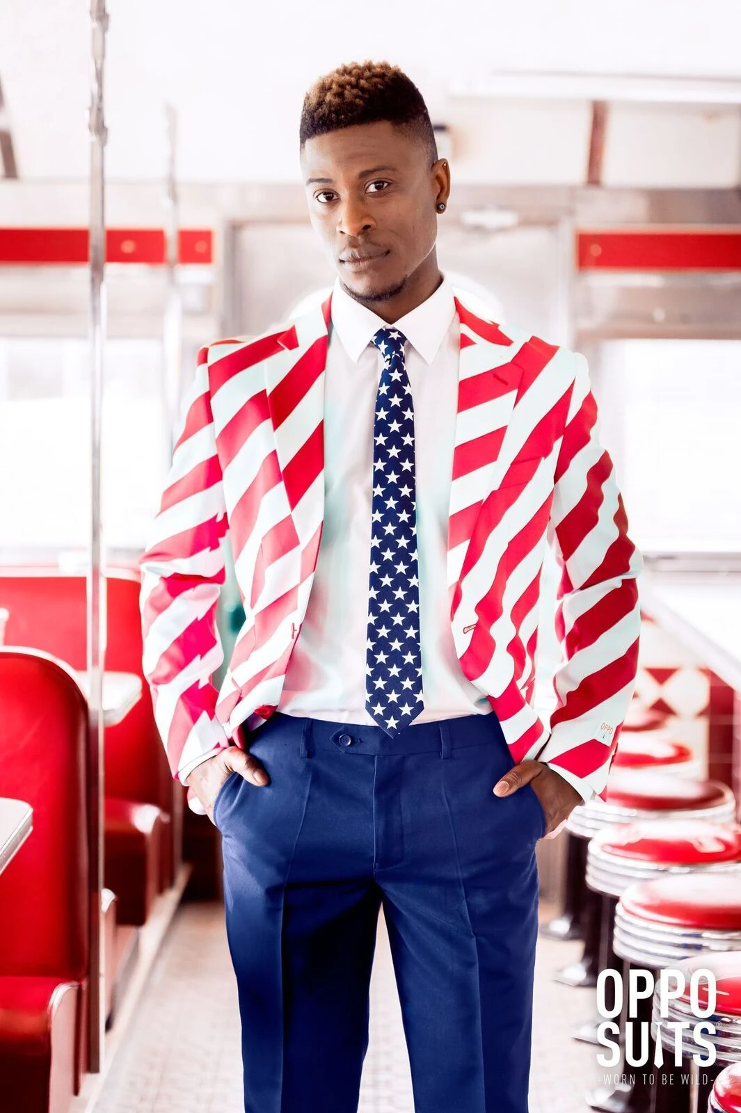 Exclusive American Opposuit Imported In For AnycostumeSuit Comes WithUnited Stripes JacketUnited Stripes TrousersUnited Stripes matching tie