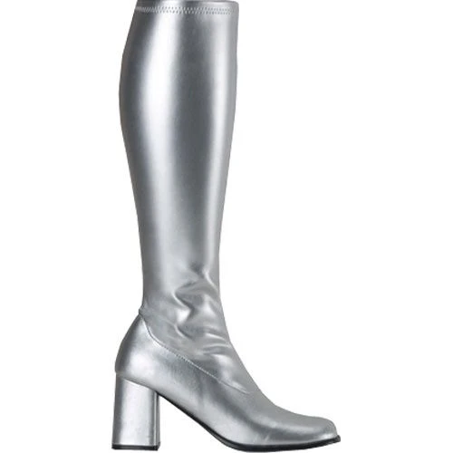 Step up the sexiness of your Fancy Dress costume with a pair of Silver Go Go Boots. Use this versatile accessory to complete your disco or mod costume. With their 3-inch block heels these sexy boots will ensure that your costume towers over the competition!