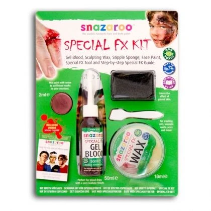 Snazaroo SPECIAL FX KIT Non Toxic easy to removeContents :- 50ml Gel Blood 18ml Sculpting Wax Special FX Tool 2ml Face Paint Stipple Sponge Step-by-step Special Effects Guide Snazaroo Special FX Kit Wicked